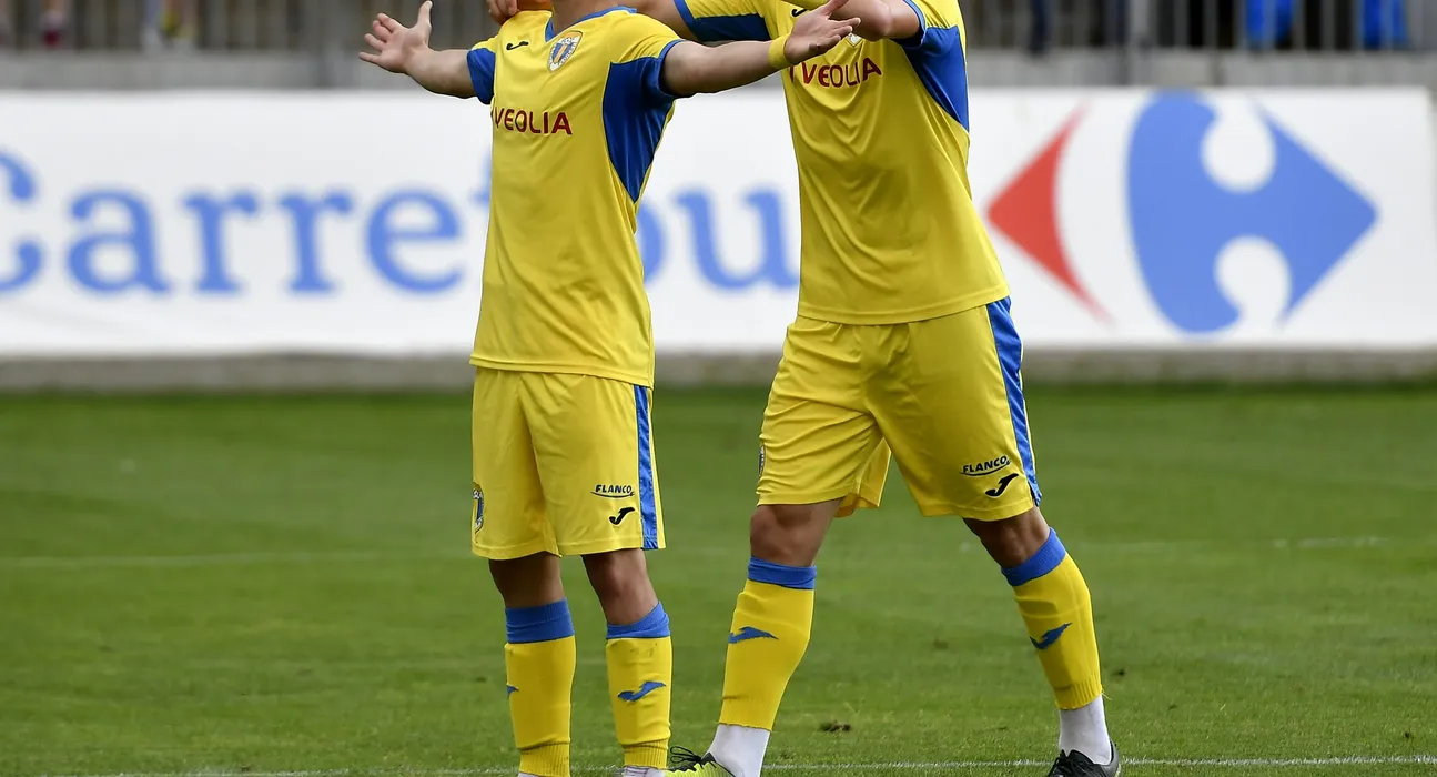 Bucurie petrolista cu Nini Popescu si Cosmin Lambru in meciul de fotbal dintre Petrolul Ploiesti si CS Mioveni 2, contand pentru Liga a-3-a, disputat pe Stadionul Ilie Oana din Ploiesti, sambata 12 mai 2018. © FOTO Razvan Pasarica/SPORT PICTURES