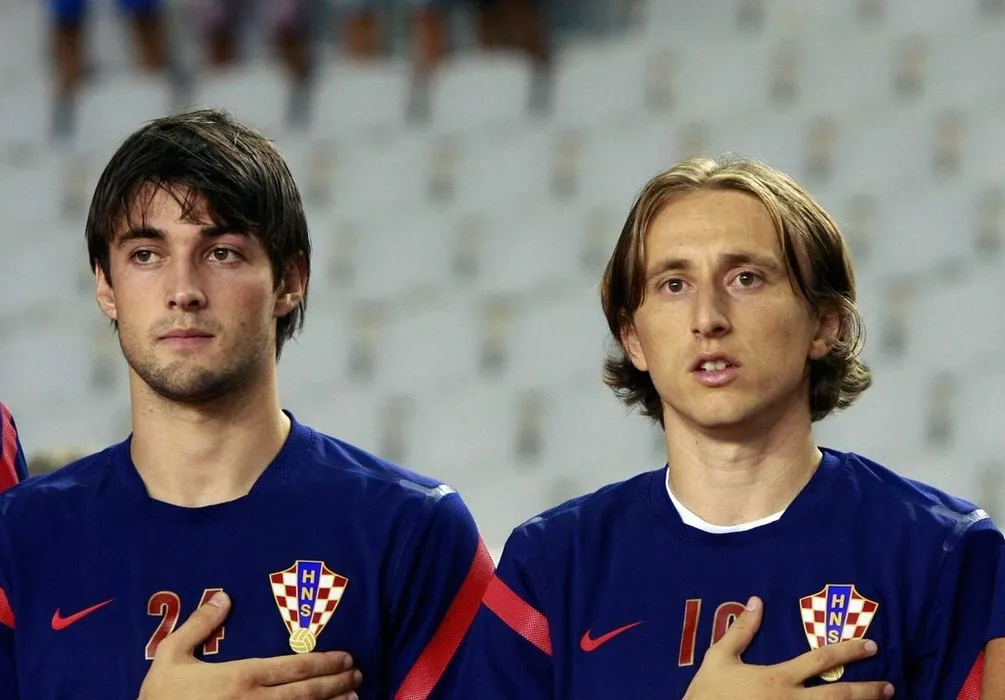 Ante Vukusic, Luka Modric and Ognjen Vukojevic. Celebrating 100 years of his existence Croatia's football federation held friendly football match between Croatia and Switzerland. Poljud Stadium, Split, CROATIA-15/08/2012/Credit:VLADIMIR DUGANDZIC/CROPIX/SIPA/1208161055,Image: 231076537, License: Rights-managed, Restrictions: , Model Release: no