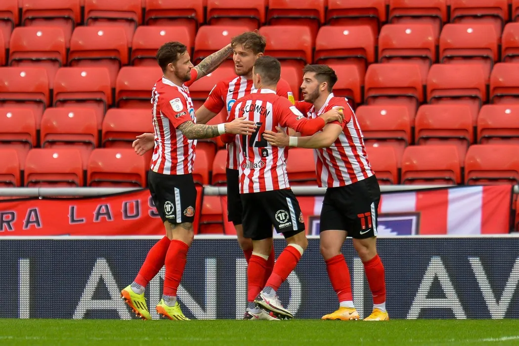 AFC Sunderland v Portsmouth, EFL Sky Bet League 1 - 24 Oct 2020,Image: 565351737, License: Rights-managed, Restrictions: EDITORIAL USE ONLY No use with unauthorised audio, video, data, fixture lists (outside the EU), club/league logos or "live" services. Online in-match use limited to 45 images (+15 in extra time). No use to emulate moving images. No use in betting, games or, Model Release: no