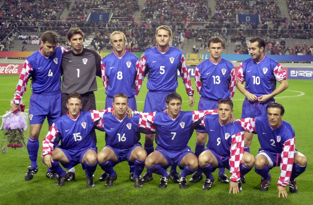 The Croatian national soccer team poses before its friendly match against South Korea 10 November 2001 In Seoul. (Standing, from L : Zvonimir Soldo, Tomislav Butina, Jasmin Agic, Josip Simunic, Mario Tokic, Milan Rapaic; front row, from L : Danijel Hrman, Miljenko Mumlec, Daniel Saric, Goran Vlaovic, Boris Zivkovic),Image: 17409989, License: Rights-managed, Restrictions: , Model Release: no