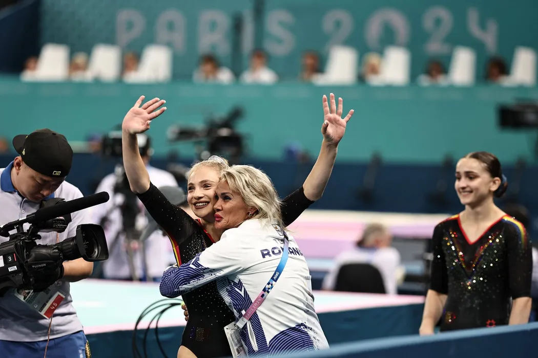 Sabrina Voinea-Maneca with her mother Camelia Voinea, ROU, after beam during qualification at 2024 Olympic Games, Olympische Spiele, Olympia, OS in Paris-Bercy 28/07/2024 *** Sabrina Voinea Maneca with her mother Camelia Voinea, ROU, after beam during qualification at 2024 Olympic Games in Paris Bercy 28 07 2024,Image: 893359810, License: Rights-managed, Restrictions: PUBLICATIONxNOTxINxCHNxSUI, Credit images as "Profimedia/ IMAGO", Model Release: no