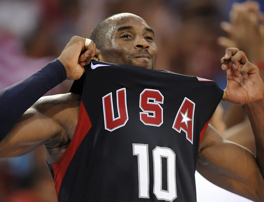 USA's Kobe Bryant celebrates at the end of the men's basketball gold medal match Spain against The US of the Beijing 2008 Olympic Games on August 24, 2008 at the Olympic basketball Arena in Beijing. The US won 118-107. AFP PHOTO / TIMOTHY A. CLARY