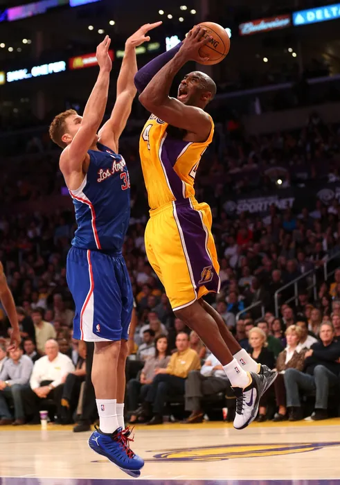 LOS ANGELES, CA - NOVEMBER 02: Kobe Bryant #24 of the Los Angeles Lakers shoots overBlake Griffin #32 of the Los Angeles Clippers at Staples Center on November 2, 2012 in Los Angeles, California. The Clippers won 105-95. NOTE TO USER: User expressly acknowledges and agrees that, by downloading and or using this photograph, User is consenting to the terms and conditions of the Getty Images License Agreement. Stephen Dunn/Getty Images/AFP== FOR NEWSPAPERS, INTERNET, TELCOS & TELEVISION USE ONLY ==