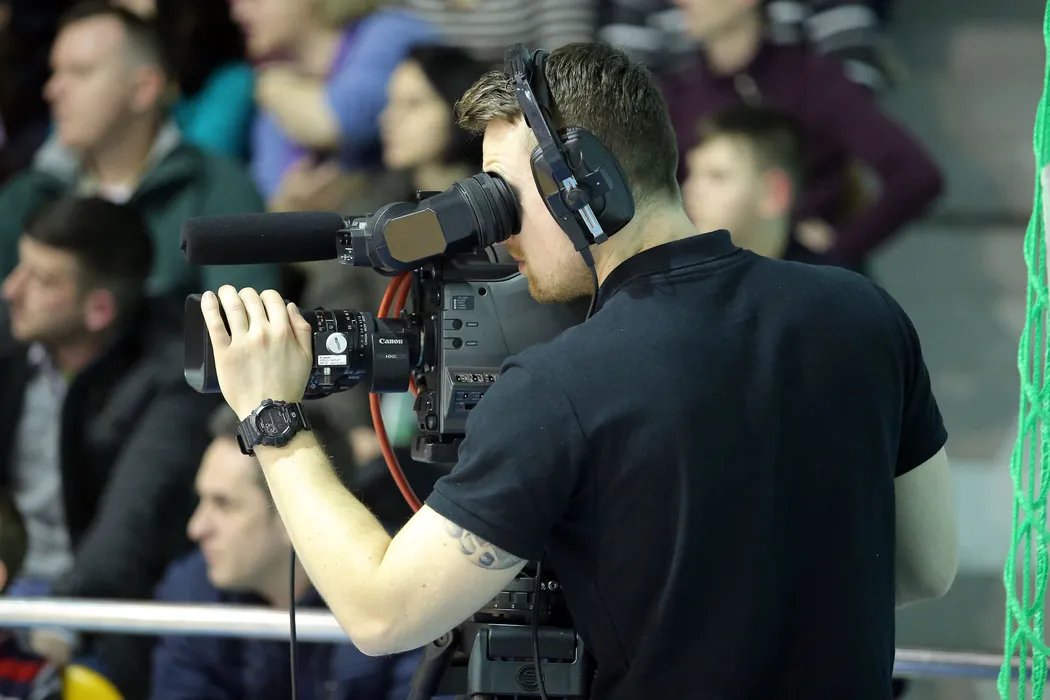 Cameraman DigiSport la meciul de handbal feminin dintre HC Zalau si ASC Corona 2010 Brasov, din cadrul etapei a XVII-a a Ligii Nationale, disputat in Sala Sporturilor din Zalau, luni 13 februarie 2017. © FOTO: Mircea Rosca / www.SportPictures.ro