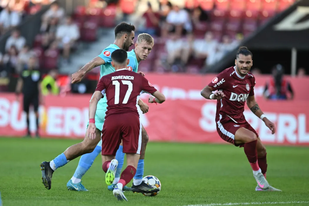 Benjamin Andre P Van Durmen si Karlo Muhar in meciul de fotbal dintre FC CFR 1907 Cluj si UTA Arad, contand pentru Superliga Superbet, desfasurat pe Stadionul Dr.Constantin Radulescu din Cluj-Napoca, duminica 21 septembrie 2025. © FOTO:Flaviu Buboi/SPORT PICTURES