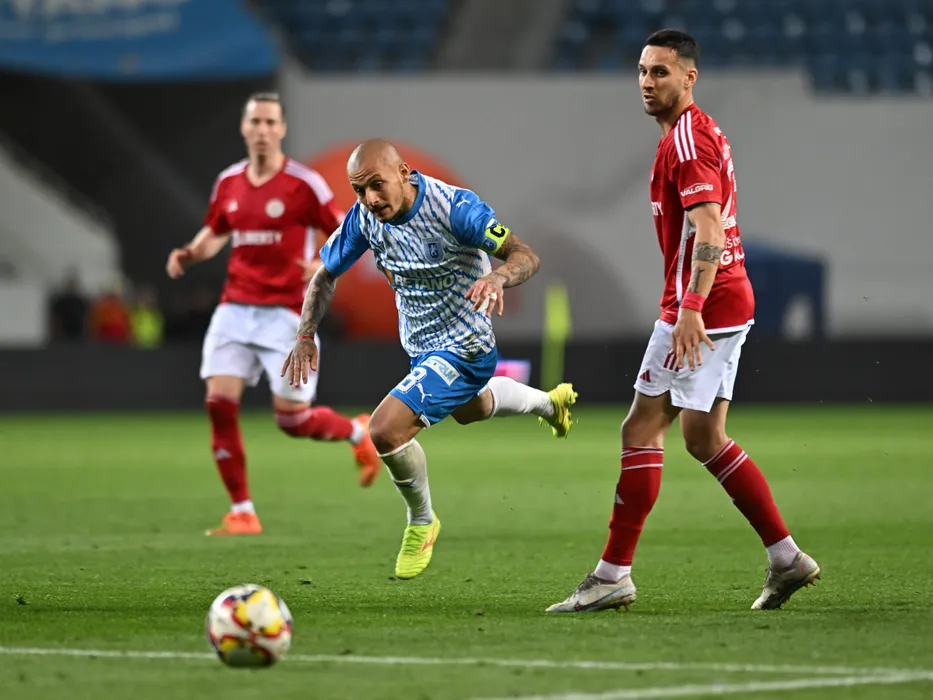 Ionuț Alexandru Mitriță si Mihai Andrei Adăscăliței in meciul de fotbal dintre Universitatea Craiova si Otelul Galati, contand pentru Cupa Romaniei Betano, desfasurat pe Stadionul Ion Oblemenco din Craiova, joi 4 aprilie 2024. © FOTO:Razvan Pasarica/SPORT PICTURES