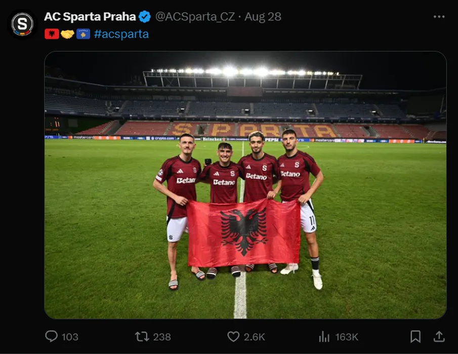 Presa din Albania a intervenit în scandalul declanșat de kosovarii Krasniqi și Rrahmani, alături de fotbaliști albanezi de la Sparta Praga. Ce a scris despre legăturile dintre clubul din Cehia și Serbia