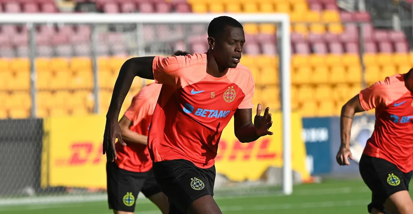 Fotbalistii de la FCSB printre care Joyskim Aurelien Dawa Tchakonte la antrenamentul oficial de dinaintea meciului impotriva lui FC Nordsjælland, din cadrul UEFA Europa Conference League, desfasurat pe Stadionul Right to Dream Park din Farum, miercuri 16 august 2023. © FOTO:Razvan Pasarica/SPORT PICTURES