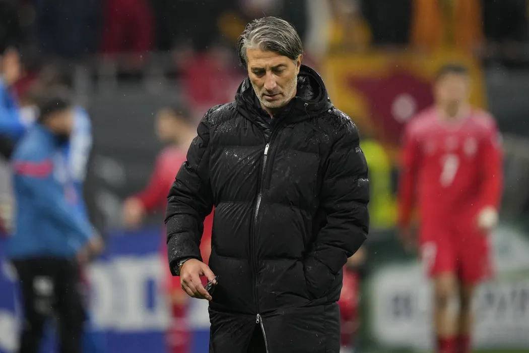 Switzerland's coach Murat Yakin leaves the pitch after the Euro 2024, group I, qualifying soccer match between Romania and Switzerland at the National Arena stadium in Bucharest, Romania, Tuesday, Nov. 21, 2023.,Image: 823487802, License: Rights-managed, Restrictions: This content is intended for editorial use only. For other uses, additional clearances may be required., Model Release: no