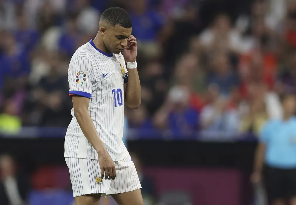 July 9, 2024, Munich: Munich, Germany, 9th July 2024. Kylan Mbappe of France reacts at the final whistle during the UEFA European Championships semi final match at Allianz Arena, Munich.,Image: 888606127, License: Rights-managed, Restrictions: This content is intended for editorial use only. For other uses, additional clearances may be required.