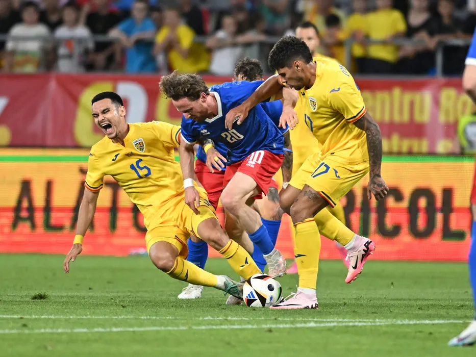 Adrian Șut, Sandro Wolfinger si Florinel Coman in meciul amical de fotbal dintre Romania si Liechtenstein, desfasurat pe Stadionul Steaua din Bucuresti, vineri 7 iunie 2024. © FOTO:Razvan Pasarica/SPORT PICTURES