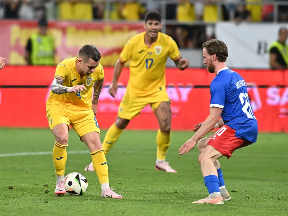 Alexandru Cicâldău si Sandro Wolfinger in meciul amical de fotbal dintre Romania si Liechtenstein, desfasurat pe Stadionul Steaua din Bucuresti, vineri 7 iunie 2024. © FOTO:Razvan Pasarica/SPORT PICTURES