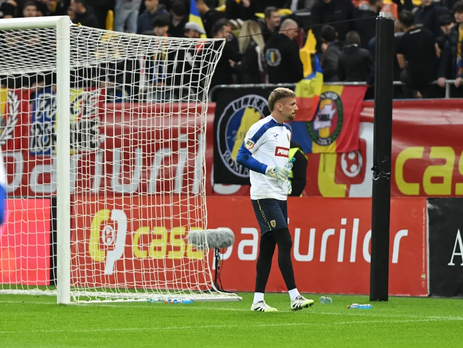 Ionut Radu la incalzire inaintea meciului de fotbal dintre Romania si Austria, din cadrul Preliminariilor Campionatului Mondial 2026, desfasurat pe Arena Nationala din Bucuresti, duminica 12 octombrie 2025. © FOTO:Razvan Pasarica/SPORT PICTURES