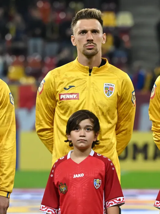 Ionut Radu la intonarea imnului national inaintea meciului amical de fotbal dintre Romania si Moldova, desfasurat pe Arena Nationala din Bucuresti, joi 9 octombrie 2025. © FOTO:Razvan Pasarica/SPORT PICTURES