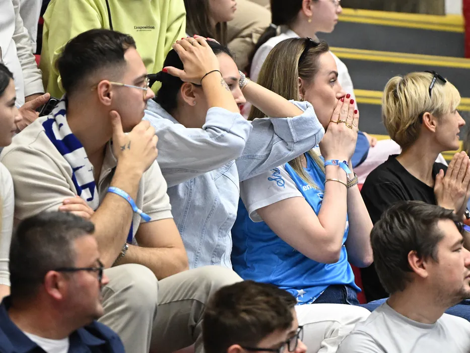 Cristina Neagu si Emilie Arntzen reactioneaza in tribuna la meciul de handbal feminin dintre CSM Bucuresti si Team Esbjerg, din cadrul Ligii Campionilor, desfasurat in Sala Polivalenta Ioan Kunst Ghermanescu din Bucuresti, duminica 26 aprilie 2026. © FOTO:Razvan Pasarica/SPORT PICTURES