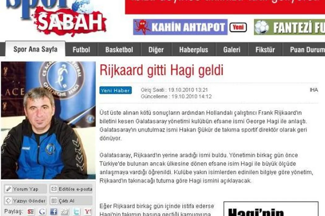 Presa turcă: Rijkaard demis, Hagi la Galata!** „Îmi doresc foarte mult să ajung acolo, dar președintele decide!”