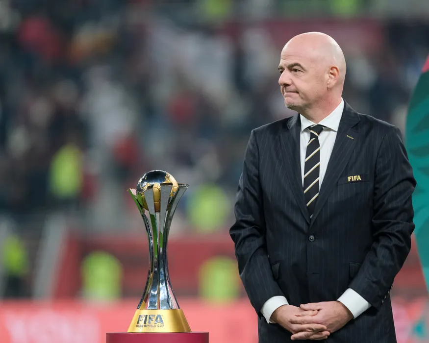 DOHA, QATAR - DECEMBER 21: President of FIFA, Gianni Infantino, with the FIFA Club World Cup trophy at Khalifa International Stadium on December 21, 2019 in Doha, Qatar. (Photo by Simon Holmes/Getty Images)
