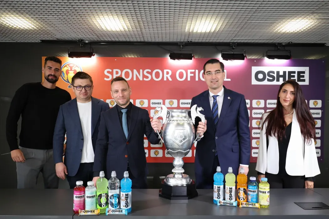 Președintele FRF Răzvan Burleanu a prezentat noul sponsor al Cupei României! Darius Olaru, Alex Mitriță sau Cristian Săpunaru vor apărea pe eticheta băuturilor isotonice OSHEE