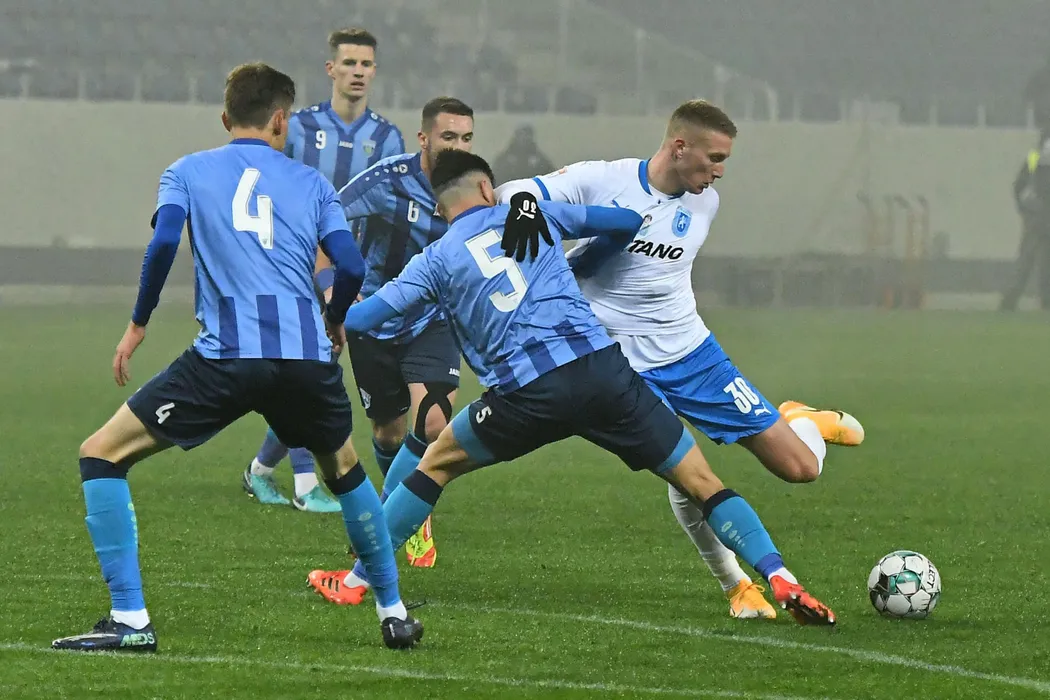 Ivan Mamut (D), de la Universitatea Craiova, suteaza in meciul contra echipei Progresul Spartac din saisprezecimile Cupei Romaniei, disputat pe stadionul Ion Oblemenco din Craiova, vineri, 27 noiembrie 2020. REMUS BADEA / MEDIAFAX FOTO