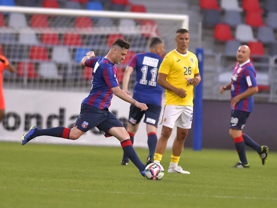 Mirel Matei Radoi si Daniel Gabriel Pancu la meciul de fotbal dintre Legende Steaua Bucuresti si Legende Romania desfasurat cu ocazia implinirii a 75 de ani de existenta a clubului militar, pe Stadionul Ghencea-Steaua din Bucuresti, marti 7 iunie 2022. © FOTO:Razvan Pasarica/SPORT PICTURES