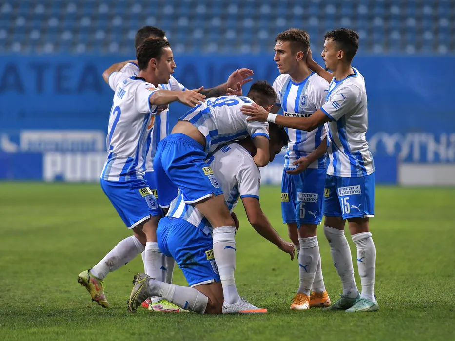 Bucurie a fotbalistilor craioveni dupa un gol marcat cu Gustavo Vagenin, Bogdan Ilie Vatajelu si Lyes Hafid Houri in meciul de fotbal dintre Universitatea Craiova si Dinamo Bucuresti, contand pentru Liga 1 Casa Pariurilor, desfasurat pe Stadionul Ion Oblemenco din Craiova, luni 27 septembrie 2021. © FOTO:Razvan Pasarica/SPORT PICTURES