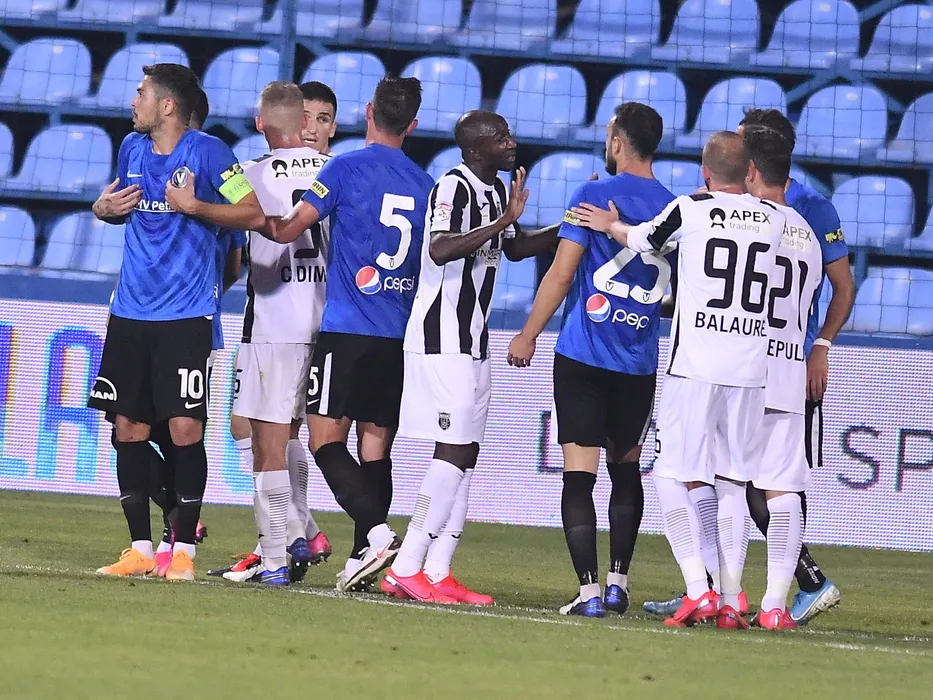 Discutii intre jucatorii celor doua echipe cu Gabriel Cristian Iancu, Kehinde Feyi Fatai si Daniel Graovac in meciul de fotbal dintre FC Viitorul Constanta si Astra Giurgiu, contand pentru Liga 1 Casa Pariurilor, desfasurat fara spectatori pe Stadionul Central al Academiei Gheorghe Hagi din Ovidiu, sambata 26 septembrie 2020. © FOTO:Razvan Pasarica/SPORT PICTURES