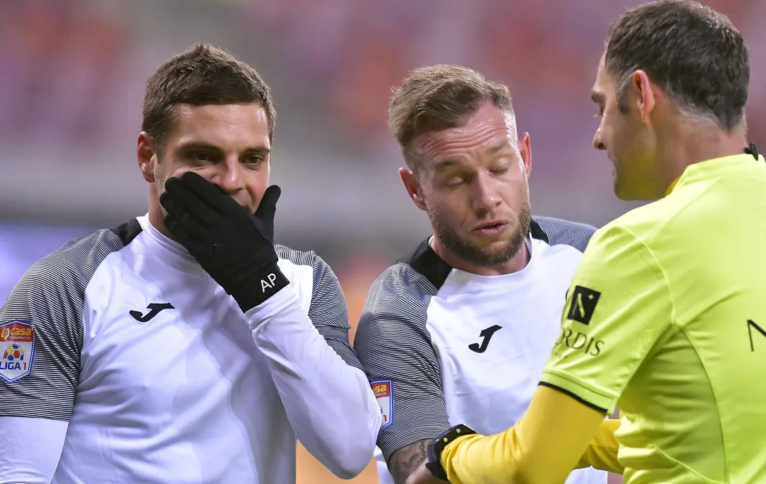 Arbitrul central Lucian Rusandu alaturi de Adrian Popa si Mathieu Thibault Gaetan Moulin in meciul de fotbal dintre FCSB si Academica Clinceni, contand pentru Liga 1 Casa Pariurilor, desfasurat fara spectatori pe Arena Nationala din Bucuresti, duminica 7 februarie 2021. © FOTO:Razvan Pasarica/SPORT PICTURES