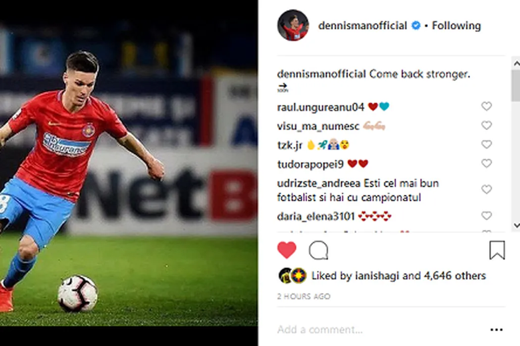 Prima reacție a lui Dennis Man după ce și-a aflat pedeapsa. FOTO | Ce mesaj a transmis „perla” de la FCSB