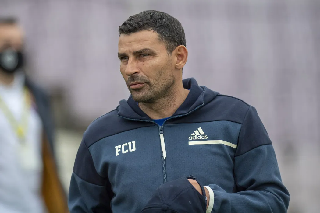 Eugen Trica, antrenorul echipei FC U Craiova 1948 urmareste meciul de fotbal dintre echipele Asu Politehnica Timisoara si FC U Craiova 1948, contand pentru etapa a 7-a din play-off-ul Ligii a 2-a de fotbal, disputat pe stadionul Dan Paltinisanu din Timisoara, vineri , 7 mai 2021. LECZKI JOZSI / MEDIAFAX FOTO