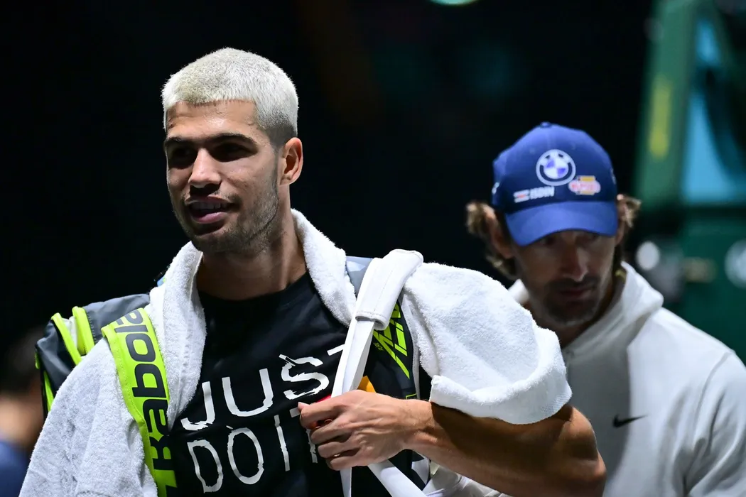 Carlos Alcaraz ( Spain ) and Juan Carlos Ferrero ( coach Carlos Alcaraz )