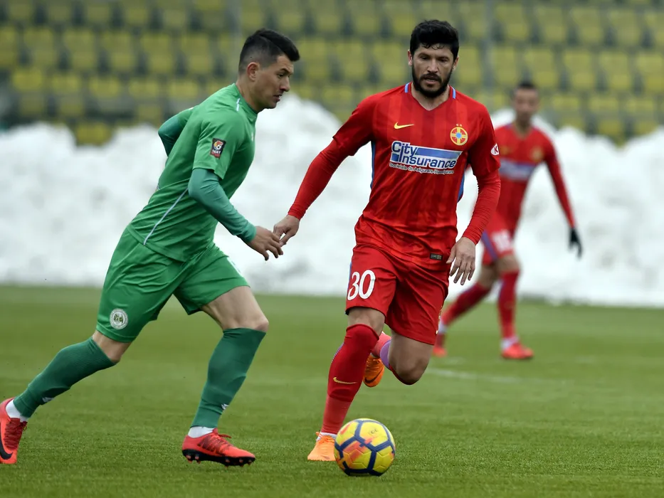 Andrei Prepelita si Cristian Tanase in meciul amical de fotbal dintre Concordia Chiajna si FC Steaua Bucuresti, desfasurat pe stadionul comunal Concordia din Chiajna, sambata 24 martie 2018. © FOTO Razvan Pasarica/SPORT PICTURES