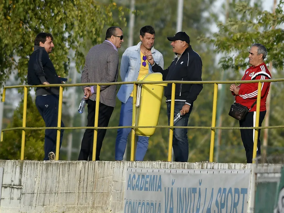 Florentin Dumitru si Iulian Miu alaturi de Mircea Minea, primarul Chiajnei, asista la meciul amical de fotbal dintre Concordia Chiajna si Dinamo Bucuresti, desfasurat pe Stadionul comunal Concordia din Chiajna, vineri 11 octombrie 2019. © FOTO:Razvan Pasarica/SPORT PICTURES