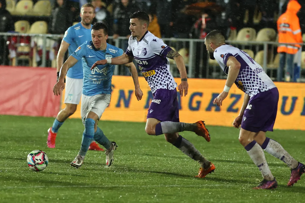 Vadim Rata si Grigore Ioan Turda in meciul de fotbal dintre FC Voluntari si FC Arges, contand pentru Cupa Romaniei, desfasurat pe Stadionul Anghel Iordanescu din Voluntari, marti 19 aprilie 2022. © FOTO:Gheorghe Fluster/SPORT PICTURES