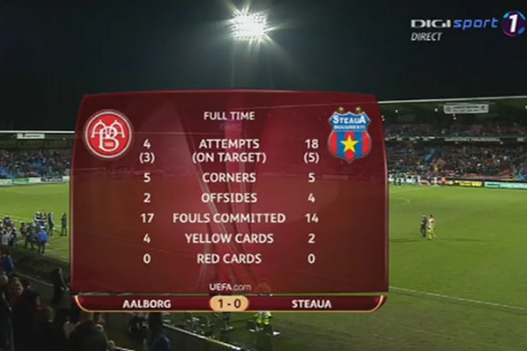Prima victorie în Europa League pentru giurgiuveni. Astra – Dinamo Zagreb 1-0. Bukari înscrie din 3 metri după o centrare excelentă a lui Seto. Adio Europa? Aalborg – Steaua 1-0. Keșeru a ratat din toate pozițiile