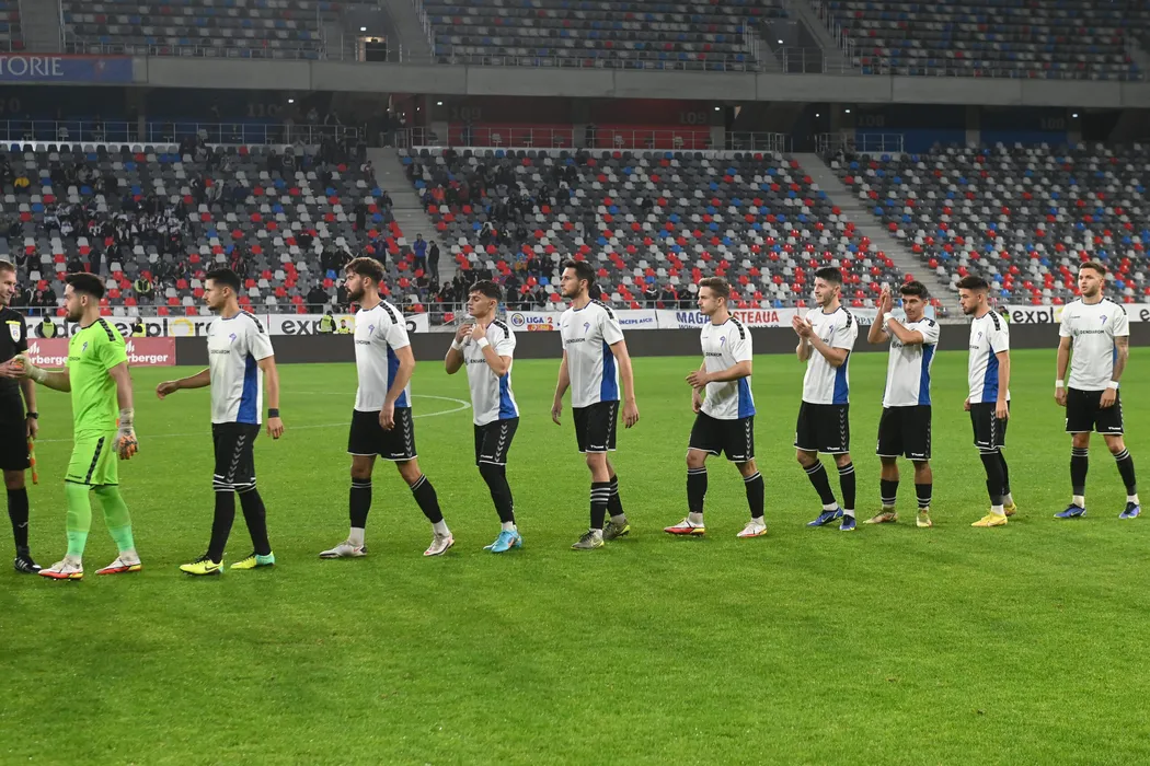 Fotbalistii din Dej la startul meciului de fotbal dintre CSA Steaua Bucuresti si FC Unirea Dej, contand pentru Liga a-2-a Casa Pariurilor, desfasurat pe Stadionul Steaua-Ghencea din Bucuresti, luni 7 noiembrie 2022. © FOTO:Razvan Pasarica/SPORT PICTURES