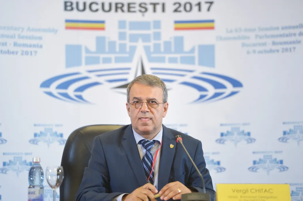 Vergil Chitac, seful delegatiei Romaniei la Adunarea Parlamentara a NATO, participa la conferinta de presa organizata cu prilejul celei de-a 63-a Sesiuni Anuale a Adunarii Parlamentare a NATO, la Palatul Parlamentului, vineri, 6 octombrie 2017. ANDREEA ALEXANDRU / MEDIAFAX FOTO
