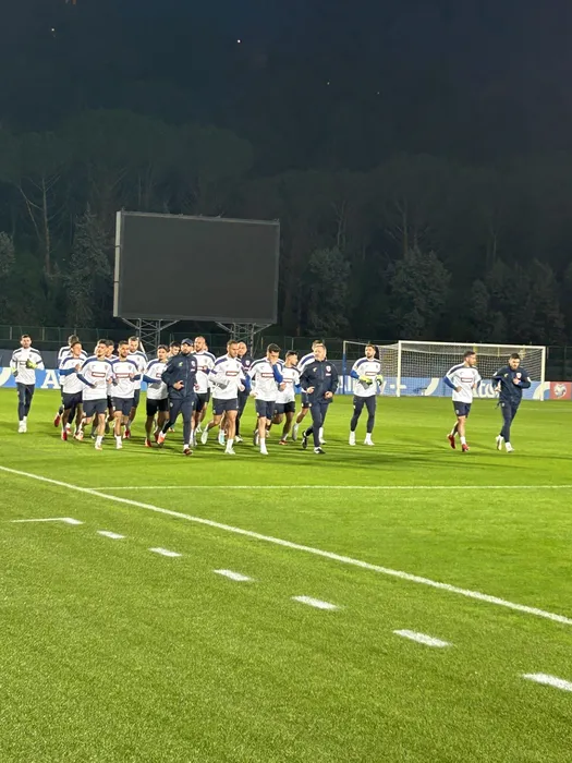 Primele imagini cu echipa națională a României la antrenamentul oficial din San Marino. Elevii lui Mircea Lucescu, supravegheați cu mare atenție din tribună