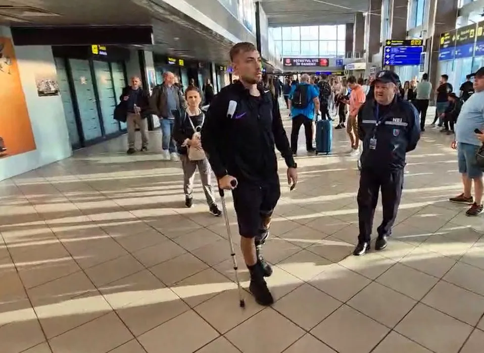 Primele imagini cu Mihai Lixandru, după accidentarea gravă din PAOK – FCSB 0-1. Cum a apărut pe aeroportul Henri Coandă