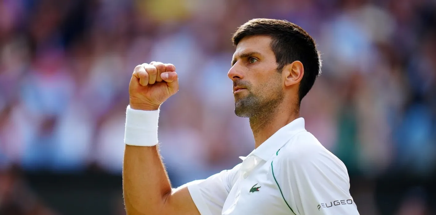 Novak Djokovic celebrates winning the third set during the Gentlemen's Singles final