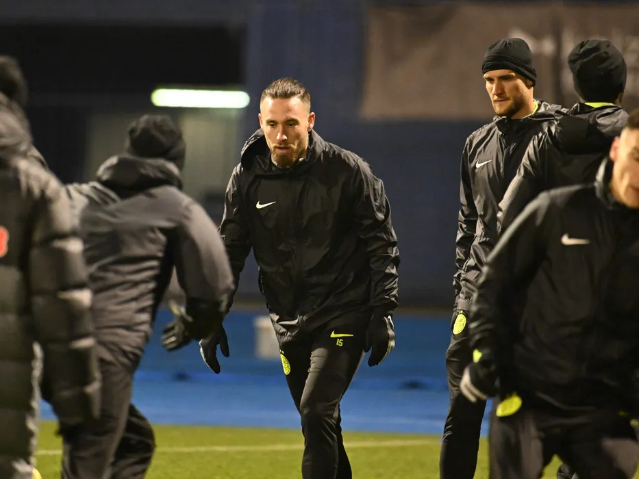 Fotbalistii de la FCSB Ofri Arad si George Daniel Bîrligea la antrenamentul oficial de dinaintea meciului impotriva celor de la GNK Dinamo Zagreb, din cadrul UEFA Europa League, desfasurat pe Stadionul Maximir din Zagreb, miercuri 21 ianuarie 2026. © FOTO:Razvan Pasarica/SPORT PICTURES