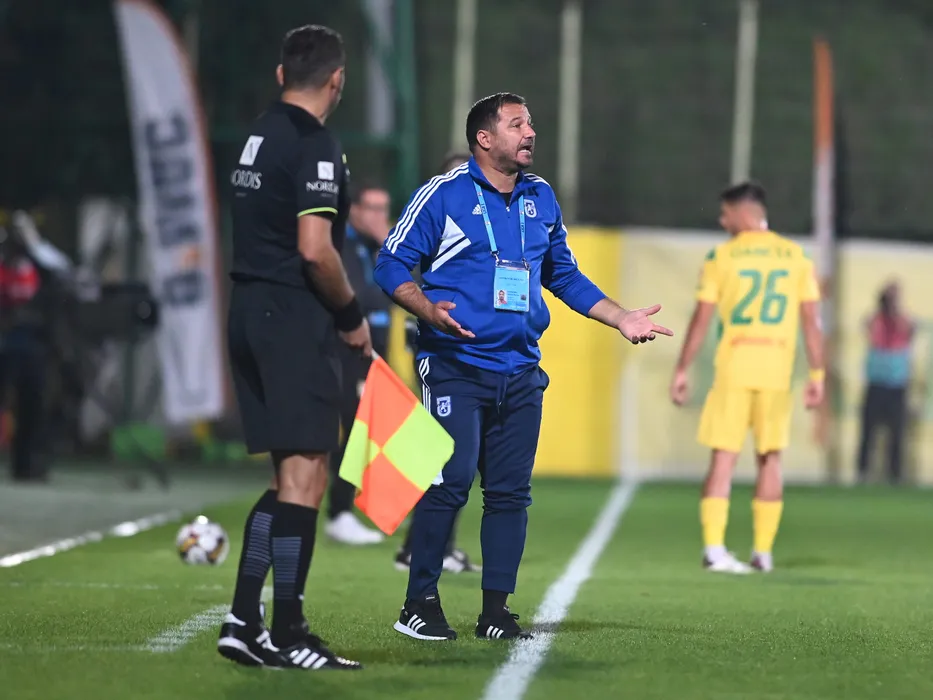 Marius Croitoru reactioneaza in meciul de fotbal dintre CS Mioveni si FC U Craiova, contand pentru Superliga Superbet, desfasurat pe Stadionul Orasenesc din Mioveni, sambata 1 octombrie 2022. © FOTO:Razvan Pasarica/SPORT PICTURES