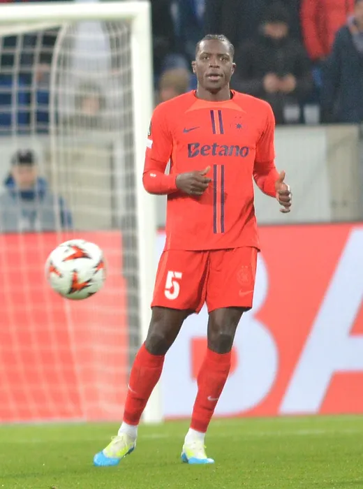 Joyskim Aurelien Dawa Tchakonte în meciul de fotbal dintre Hoffenheim și FCSB, contând pentru UEFA Europa League, desfășurat pe Stadionul Rhein-Neckar-Arena din Sinsheim, joi 12 decembrie 2024. © FOTO: Alexandra Cristina GRIGORESCU/SPORT PICTURES