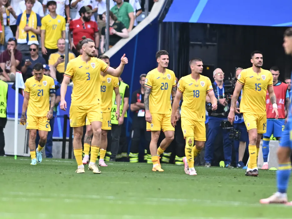 Fotbalistii romani Nicolae Stanciu, Radu Drăgușin, Dennis Man, Răzvan Marin si Andrei Burca dupa golul reusit de Denis Drăguş in meciul dintre Romania si Ucraina, din cadrul UEFA EURO 2024, desfasurat pe Fussball Arena din Munchen, luni 17 iunie 2024. © FOTO:Razvan Pasarica/SPORT PICTURES