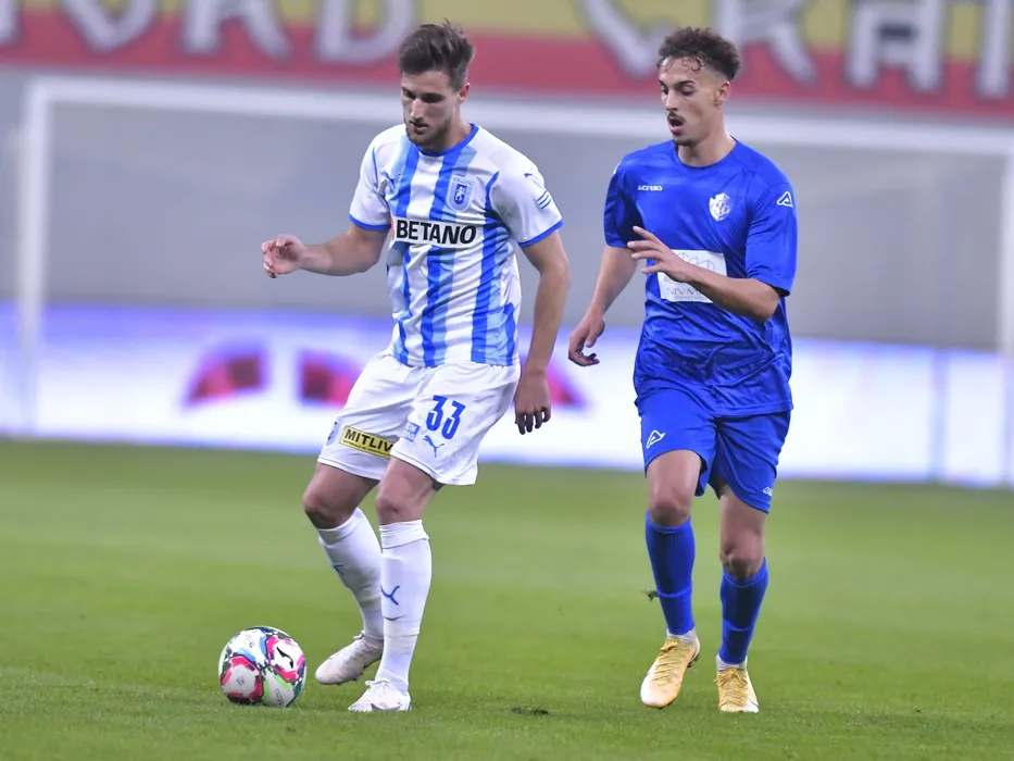 Mihai Cristian Capatina si Robert Bubuioc in meciul de fotbal dintre Universitatea Craiova si ACSO Filiasi, contand pentru Cupa Romaniei, desfasurat pe Stadionul Ion Oblemenco din Craiova, joi 2 decembrie 2021. © FOTO:Razvan Pasarica/SPORT PICTURES