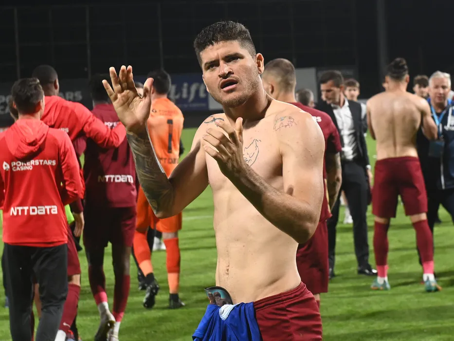 Jefferson Yuri De Sousa Matias aplauda galeria dupa meciul de fotbal dintre CFR Cluj si FC U Craiova, barajul din cadrul Superligii Superbet pentru UEFA Conference League, desfasurat pe Stadionul Dr. Constantin Radulescu din Cluj Napoca, joi 1 iunie 2023. © FOTO:Razvan Pasarica/SPORT PICTURES