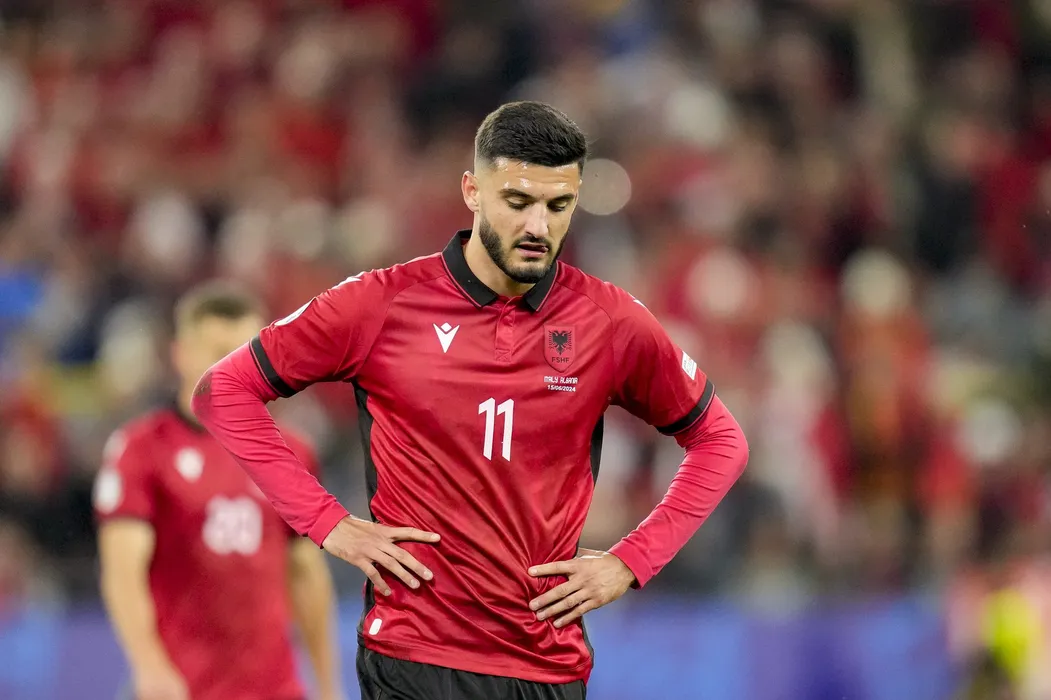 June 15, 2024, Dortmund, North Rhine-Westphalia, Germany: Armando Broja (Albania) enttaeuscht waehrend des Spiels der UEFA EURO 2024 - Gruppe B zwischen Italien und Albanien, BVB Stadion Dortmund am 15. June 2024 in Dortmund, Deutschland. (Foto von Alex Gottschalk/DeFodi Images) ..Armando Broja (Albania) looks dejected during the UEFA EURO 2024 - Group B match between Italy and Albania at BVB Stadium Dortmund on June 15, 2024 in Dortmund, Germany.,Image: 882206899, License: Rights-managed, Restrictions: * Croatia, France, Germany, Poland and UK Rights OUT *, Model Release: no