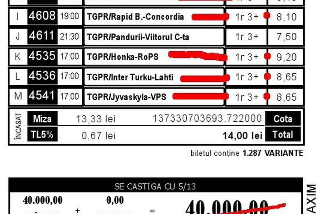 Probabil cel mai nebun pariu pus în România! **A avut 130 de miliarde cotă totală și a „prins” numai cote de peste 5/1!