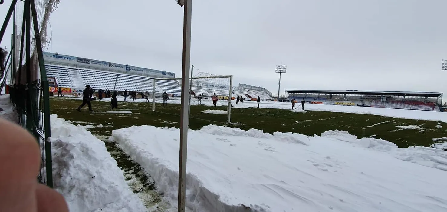 FC Voluntari – FCSB se amână iar? UPDATE | S-a început deszăpezirea suprafeței de joc a stadionului ”Anghel Iordănescu” FOTO