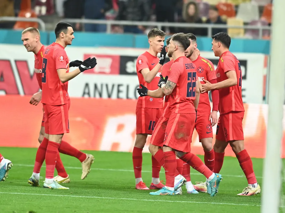 Bucurie a fotbalistilor stelisti dupa un gol marcat cu Joonas Tamm, Adrian Gheorghe Sut, Deian Cristian Sorescu si Octavian George Popescu in meciul de fotbal dintre FCSB si Petrolul Ploiesti, contand pentru Superliga Superbet, desfasurat pe Arena Nationala din Bucuresti, joi 2 martie 2023. © FOTO:Razvan Pasarica/SPORT PICTURES
