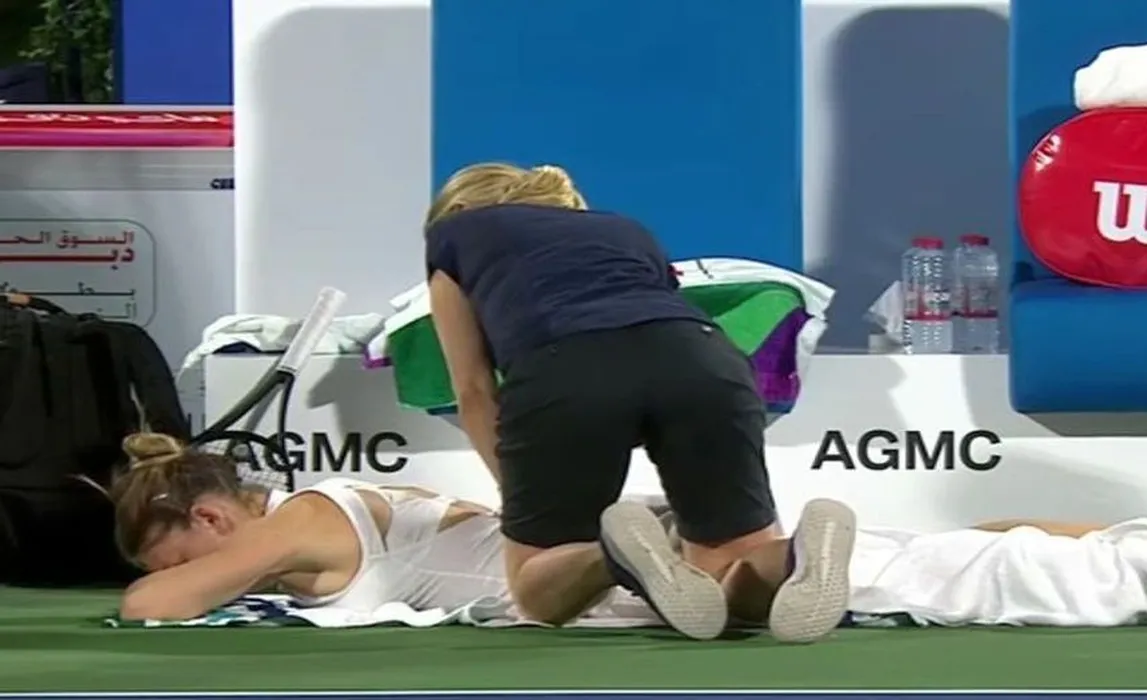 Probleme medicale pentru Simona Halep în primul meci de la Dubai! Românca a cerut intervenția fizioterapeutului